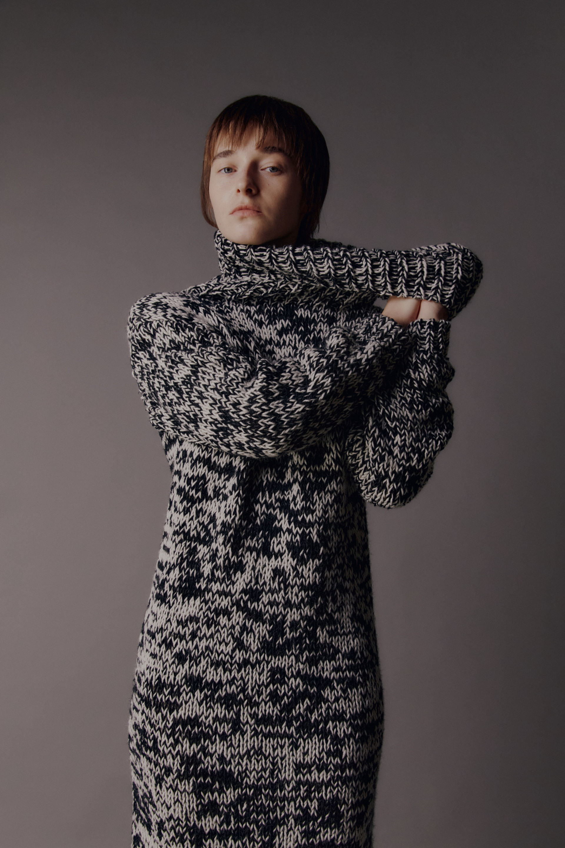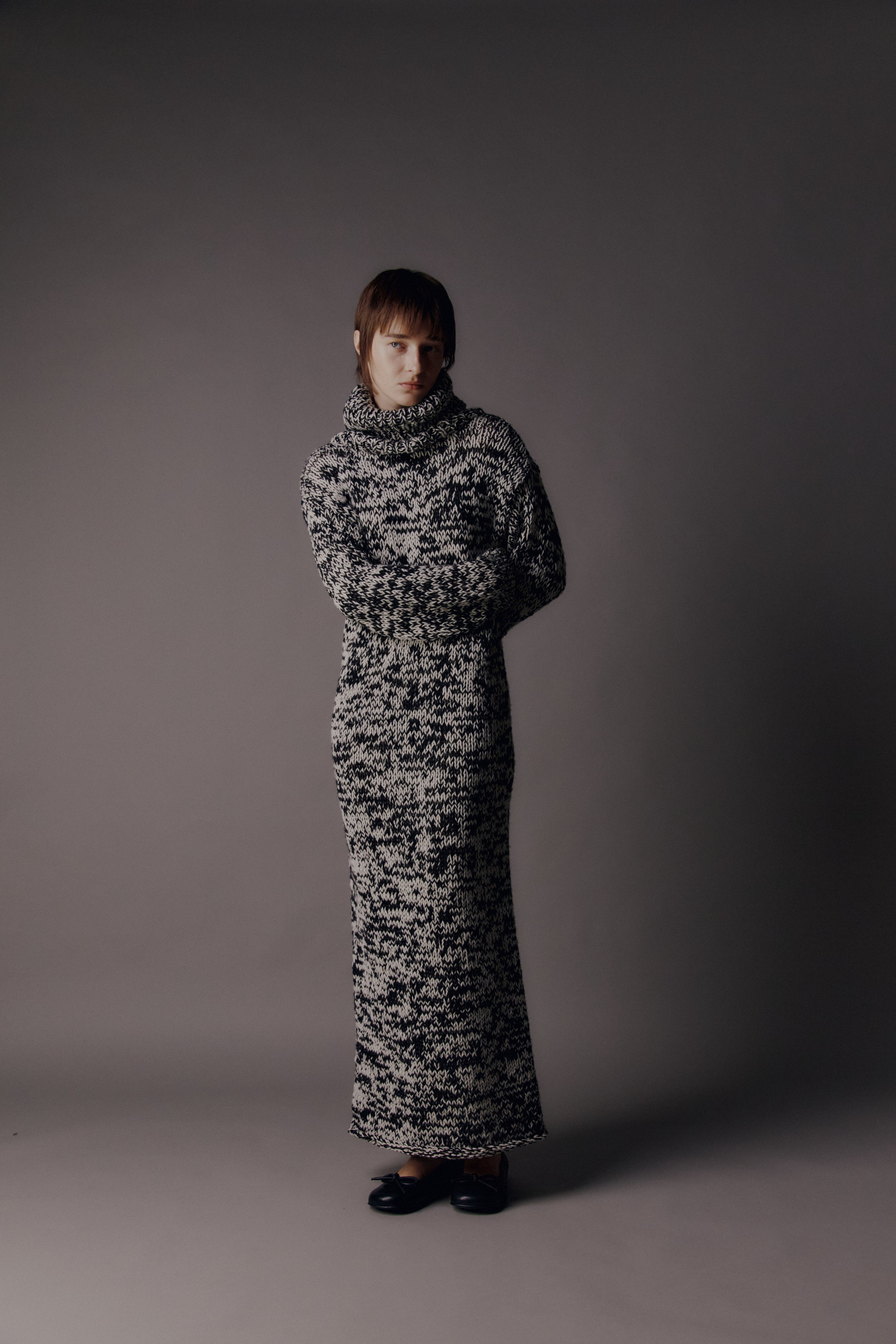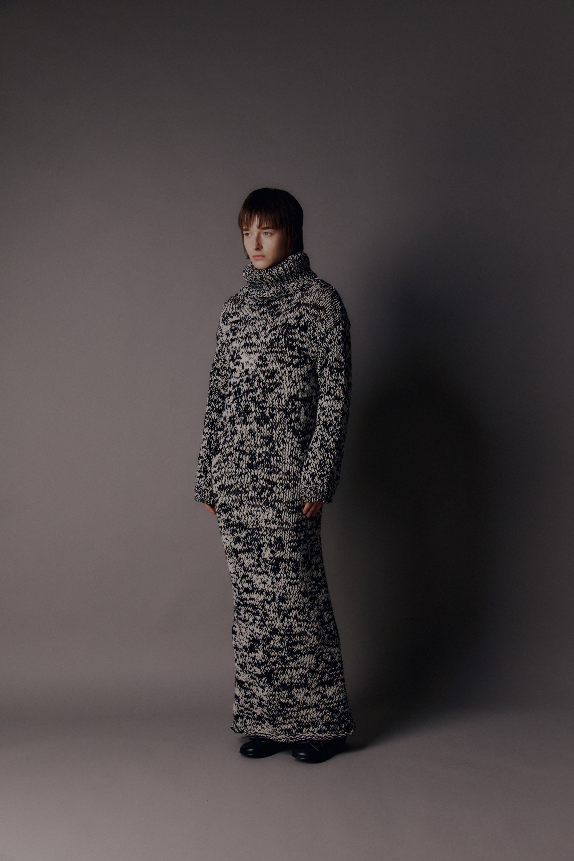 • Description: Wool blend handcraft knit, high turtle neck, long sleeve. full length