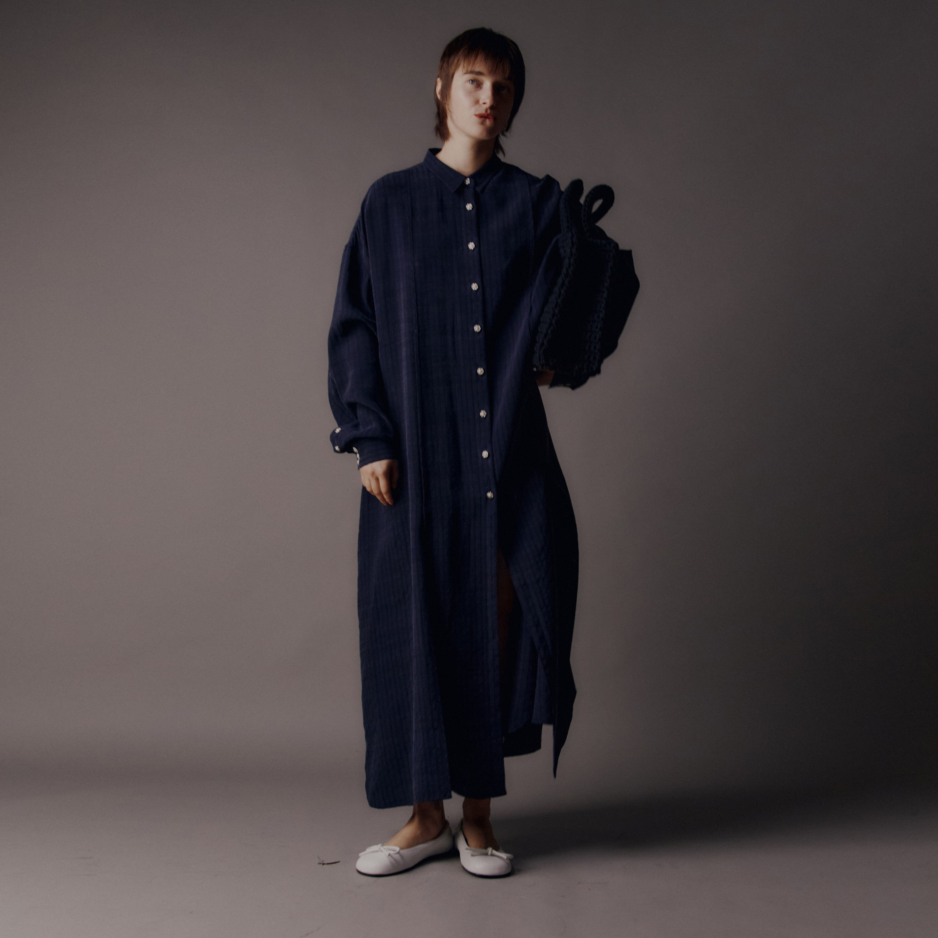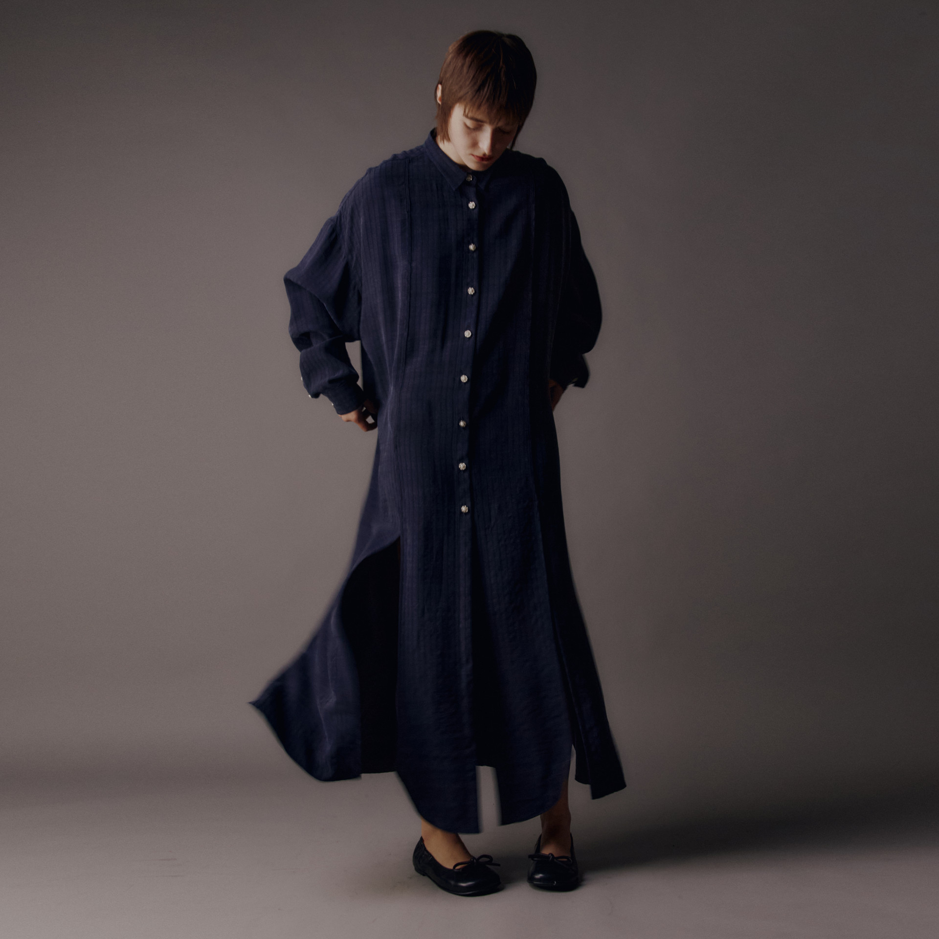 • Description: Tencel striped long sleeve shirt dress, Front panel cutout, Slit detail on both sides, Dropped shoulders, Decorative Button Fastening, Classic shirt collar, Fluid loose fit
