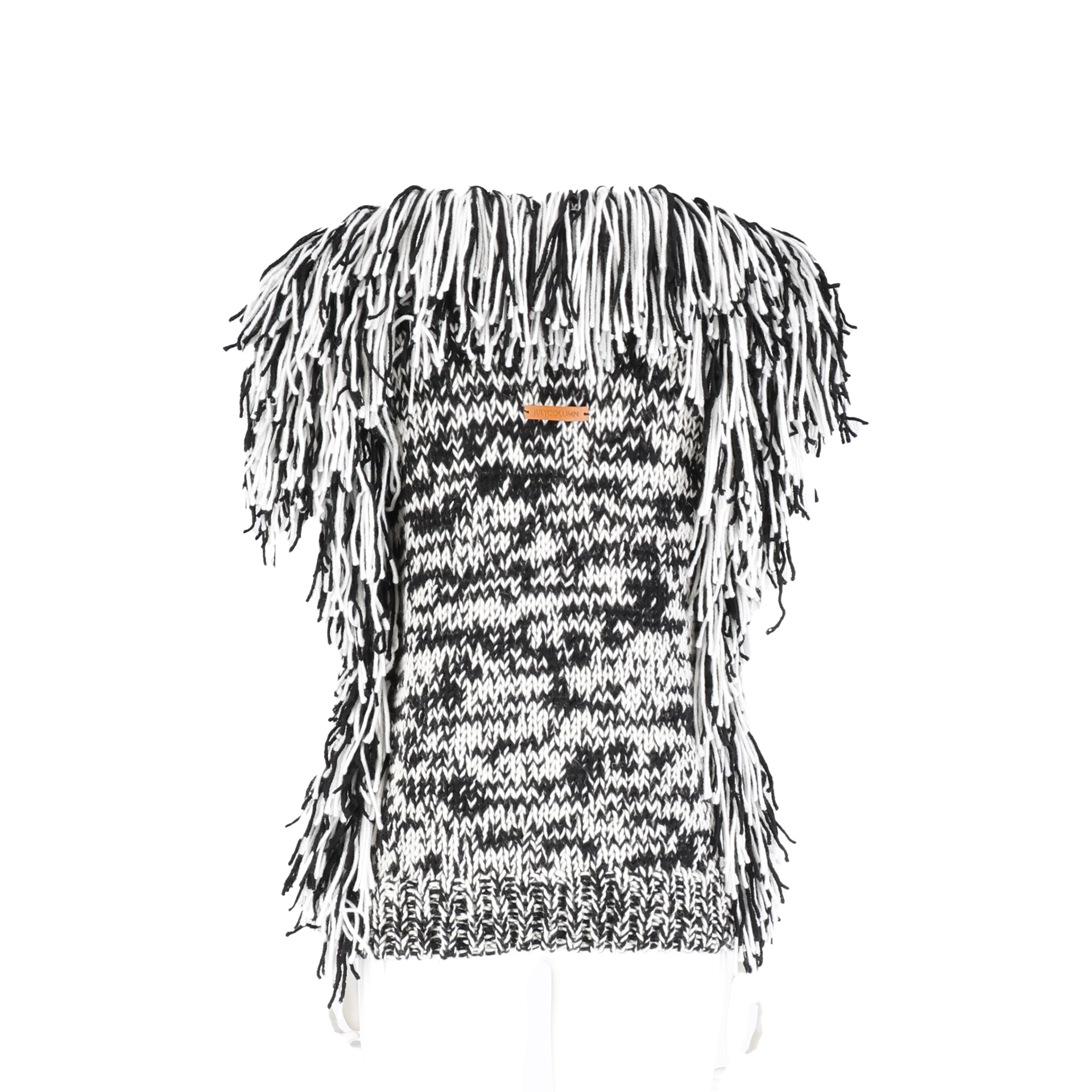 •Description: Wool blend handcraft sleeveless knit, fringe detail